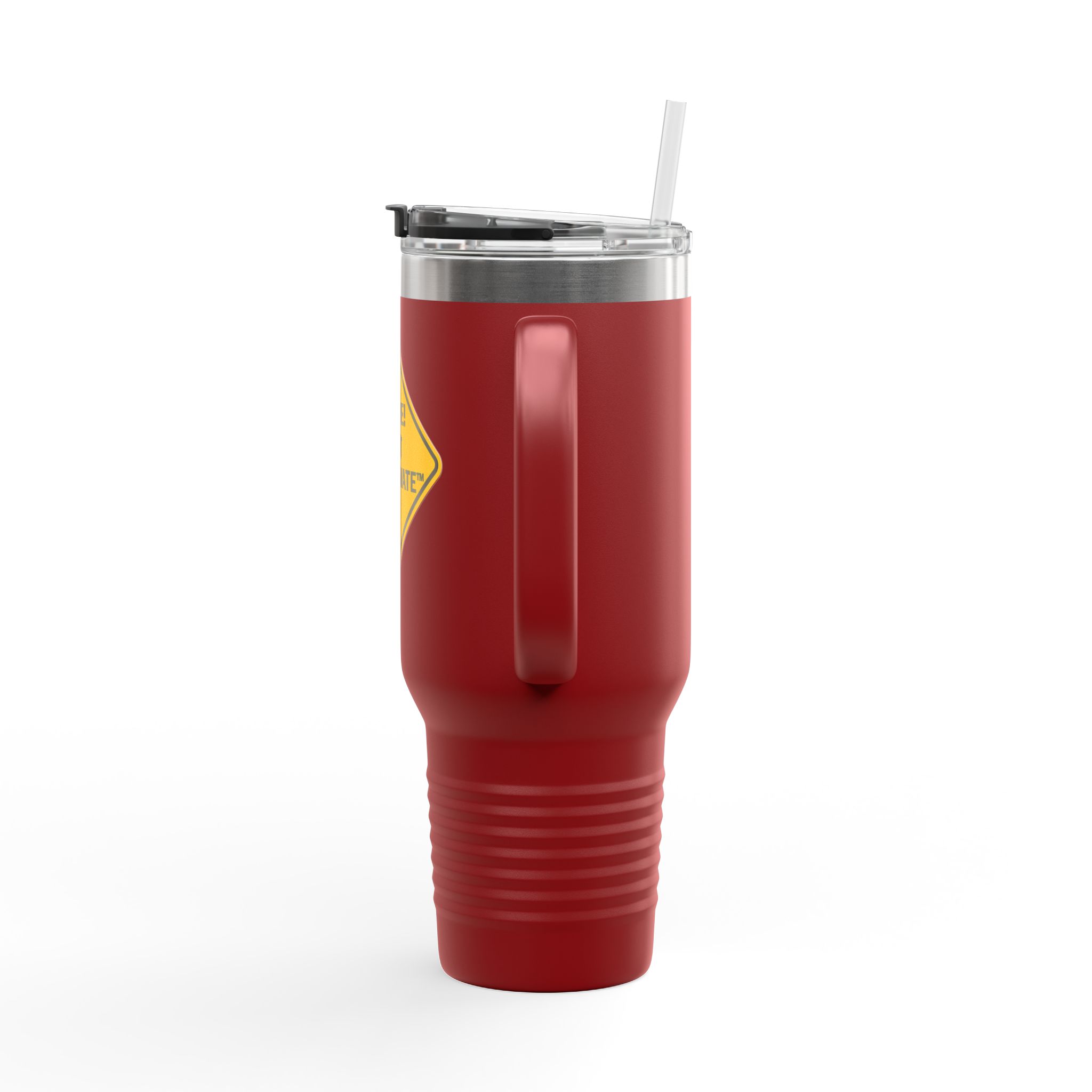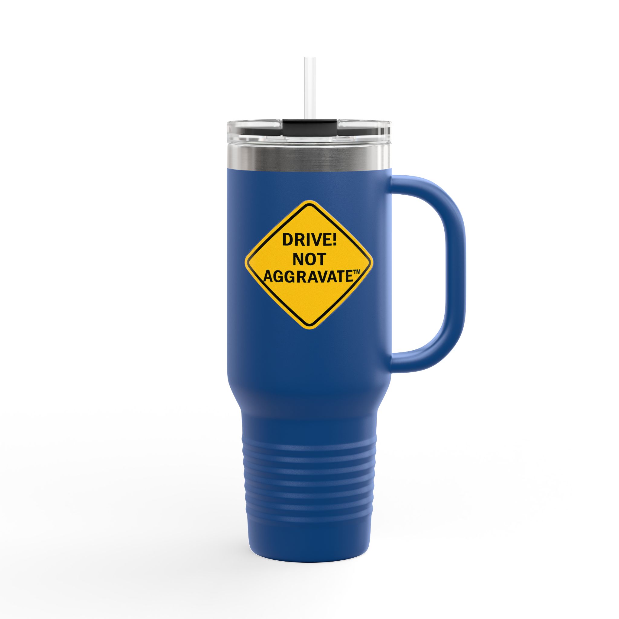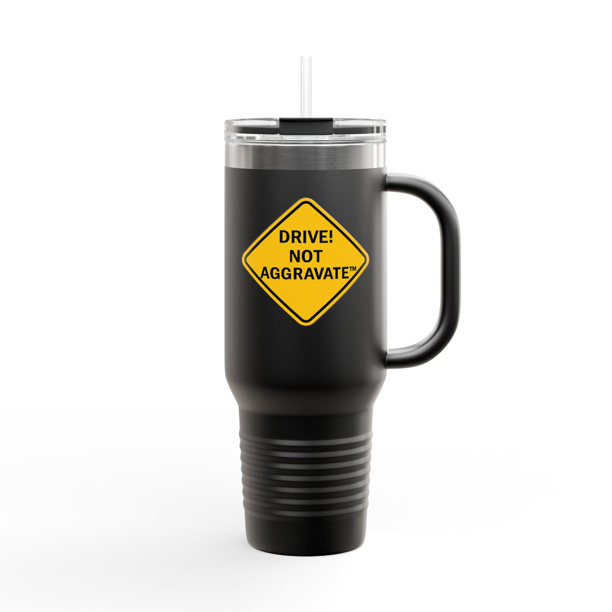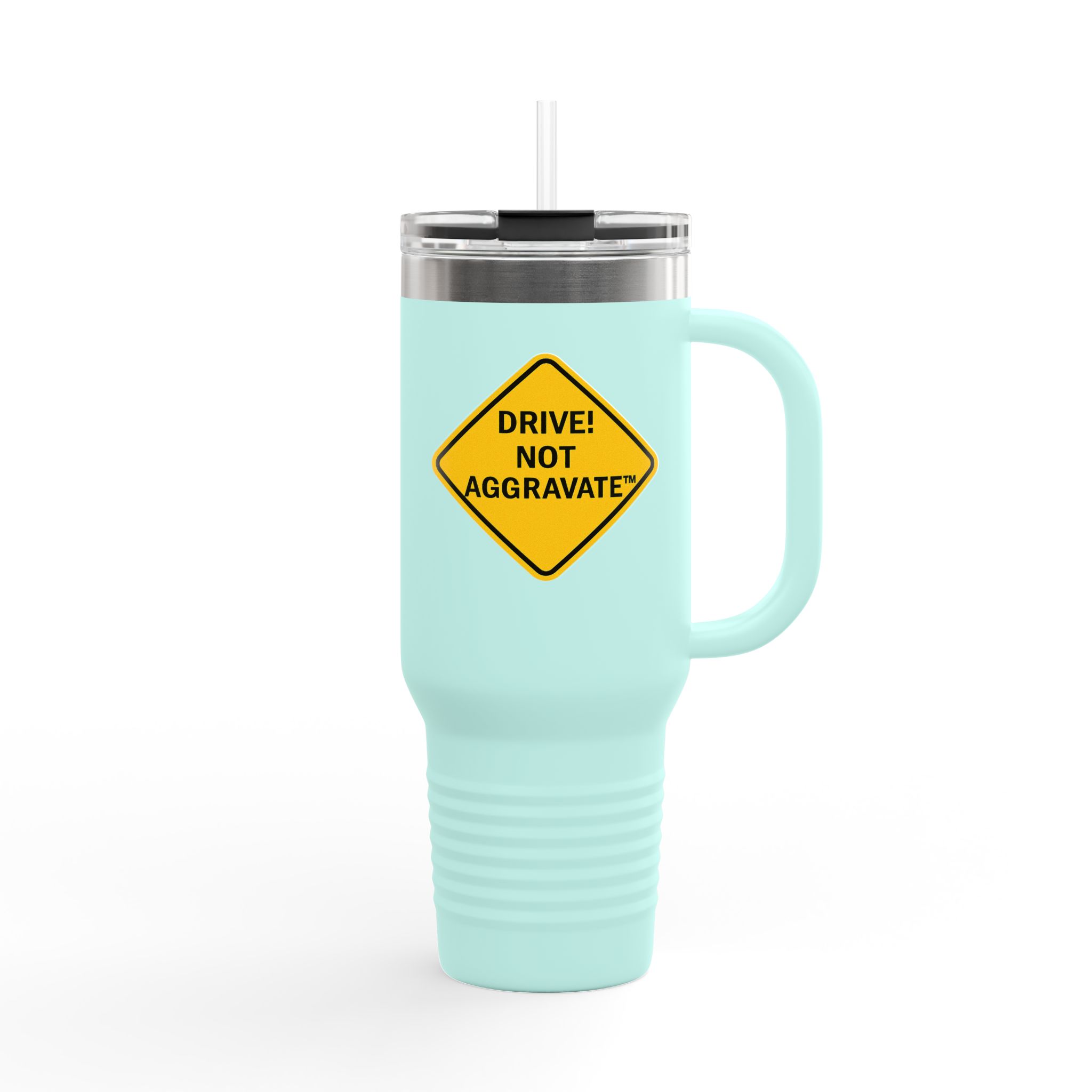 Whether you’re dodging potholes or traffic violations, this mug keeps your beverage just how you like it—steaming hot or ice cold for hours. Styled with our signature “Drive! Not Aggravate” design, it’s the subtle flex every responsible (or recovering) speed demon needs.